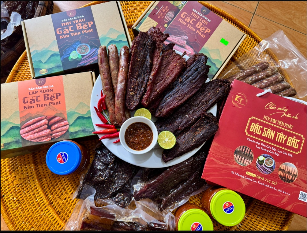 Thịt gác bếp Sơn La từ lâu đã là một biểu tượng ẩm thực không thể thiếu của vùng Tây Bắc, đặc biệt là trong văn hóa của đồng bào dân tộc Thái. Giữa vô vàn sản phẩm trên thị trường, Thịt gác bếp Kim Tiền Phát Sơn La nổi lên như một thương hiệu tiêu biểu, kết hợp hài hòa giữa hương vị truyền thống và quy trình sản xuất hiện đại, đặc biệt đã được công nhận đạt chuẩn OCOP tỉnh Sơn La.